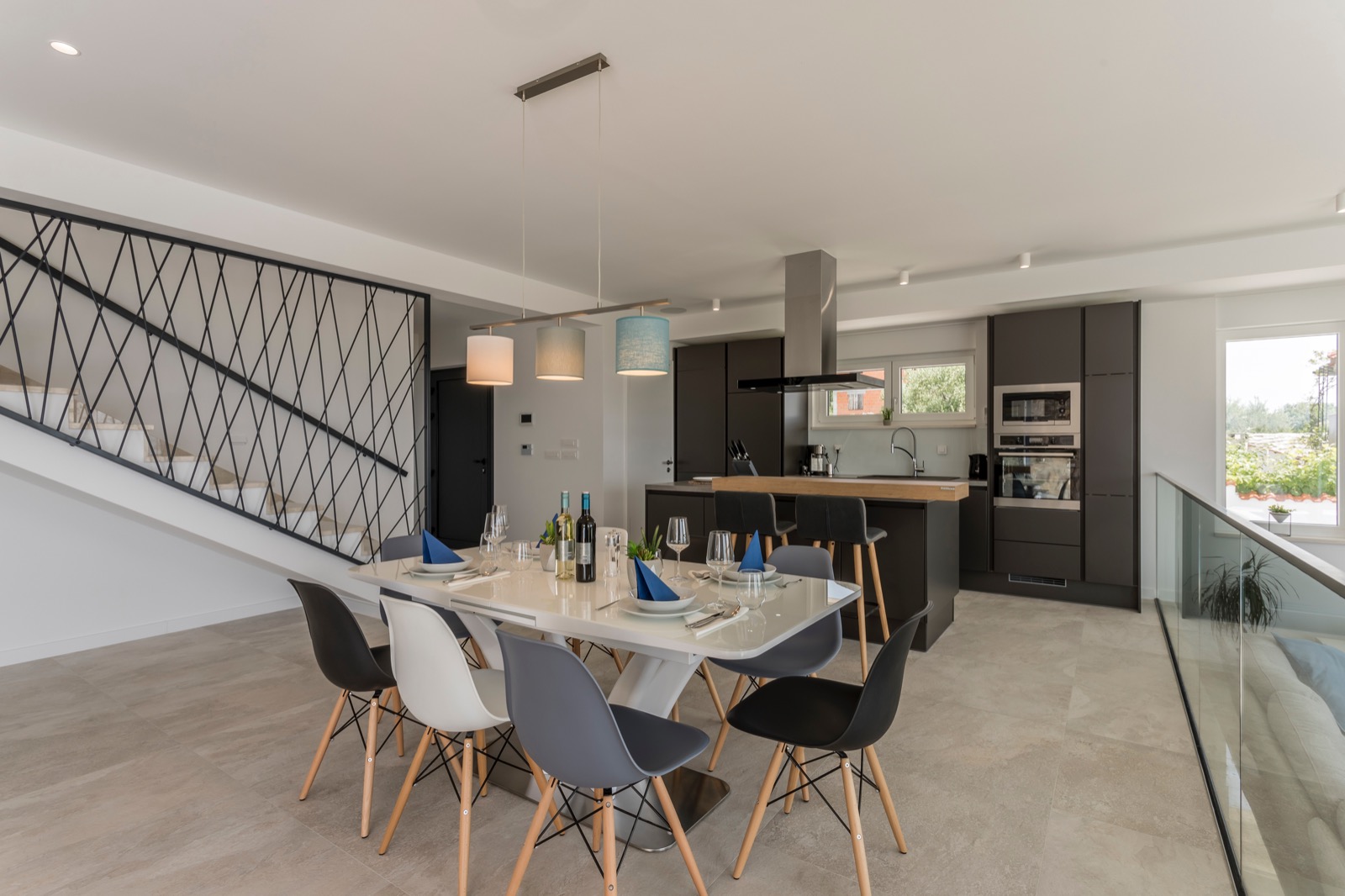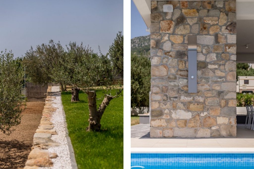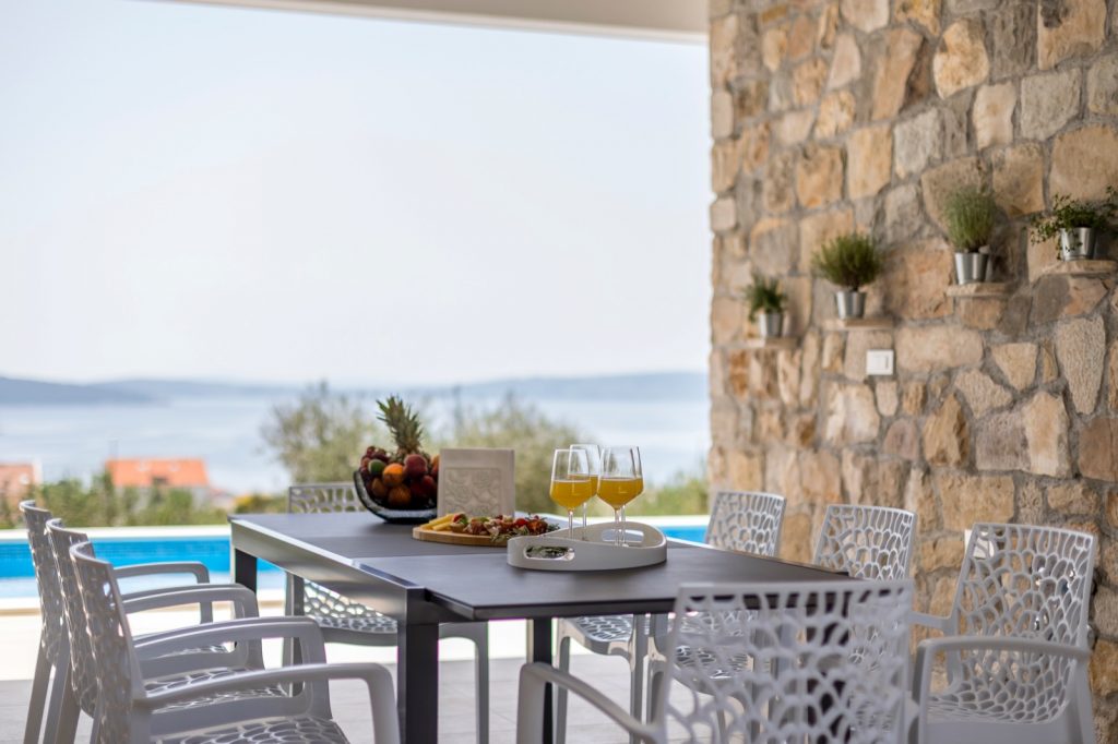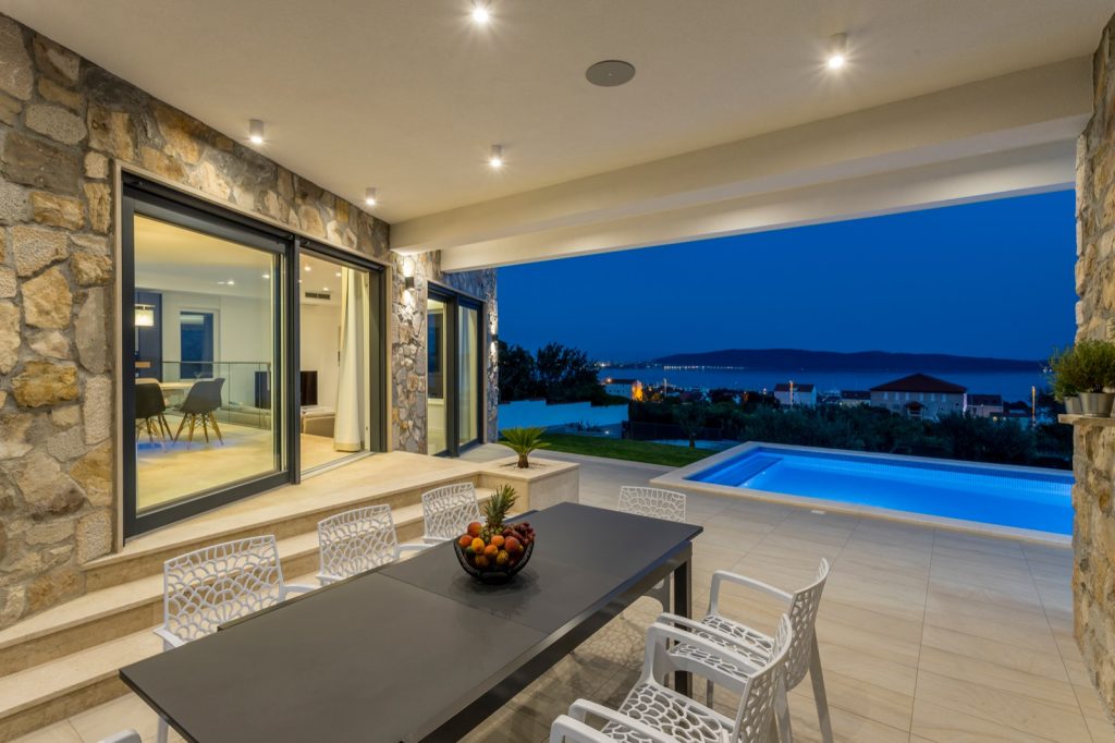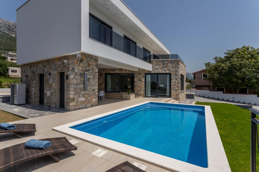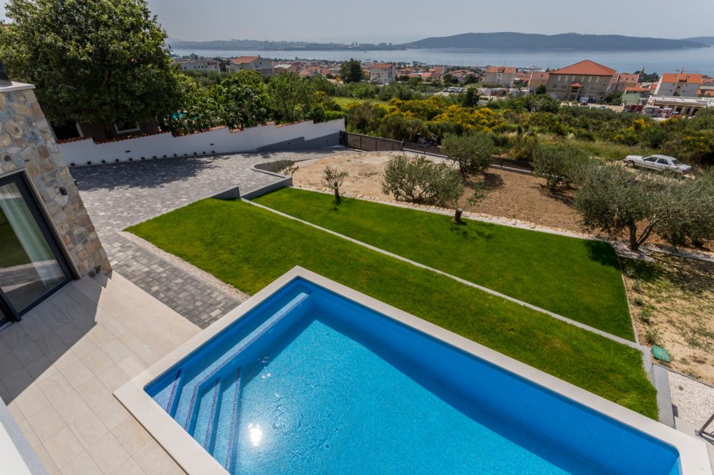 Villa Noni was completed in June 2019 and represents a piece of modern luxury on the Dalmatian coast. Villa is situated in quiet and peaceful area with a sea views. Surrounded by trees perched on a hillside with spectacular views of the Mediterranean sea and islands. With large terrace, parking space, olive gardens, covered outside seating area and inviting heated swimming pool it has all the facilities to let you enjoy your holiday with family.