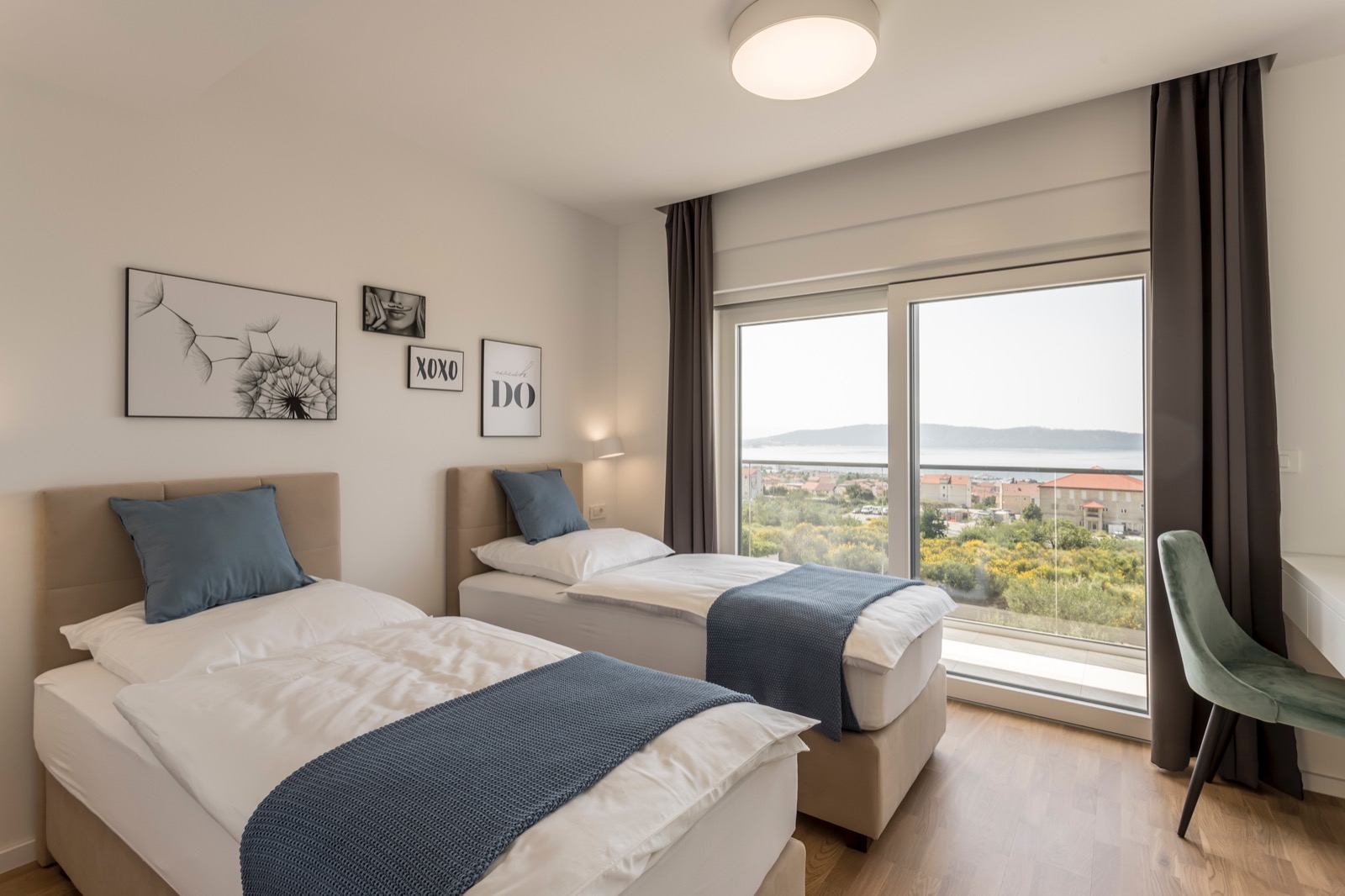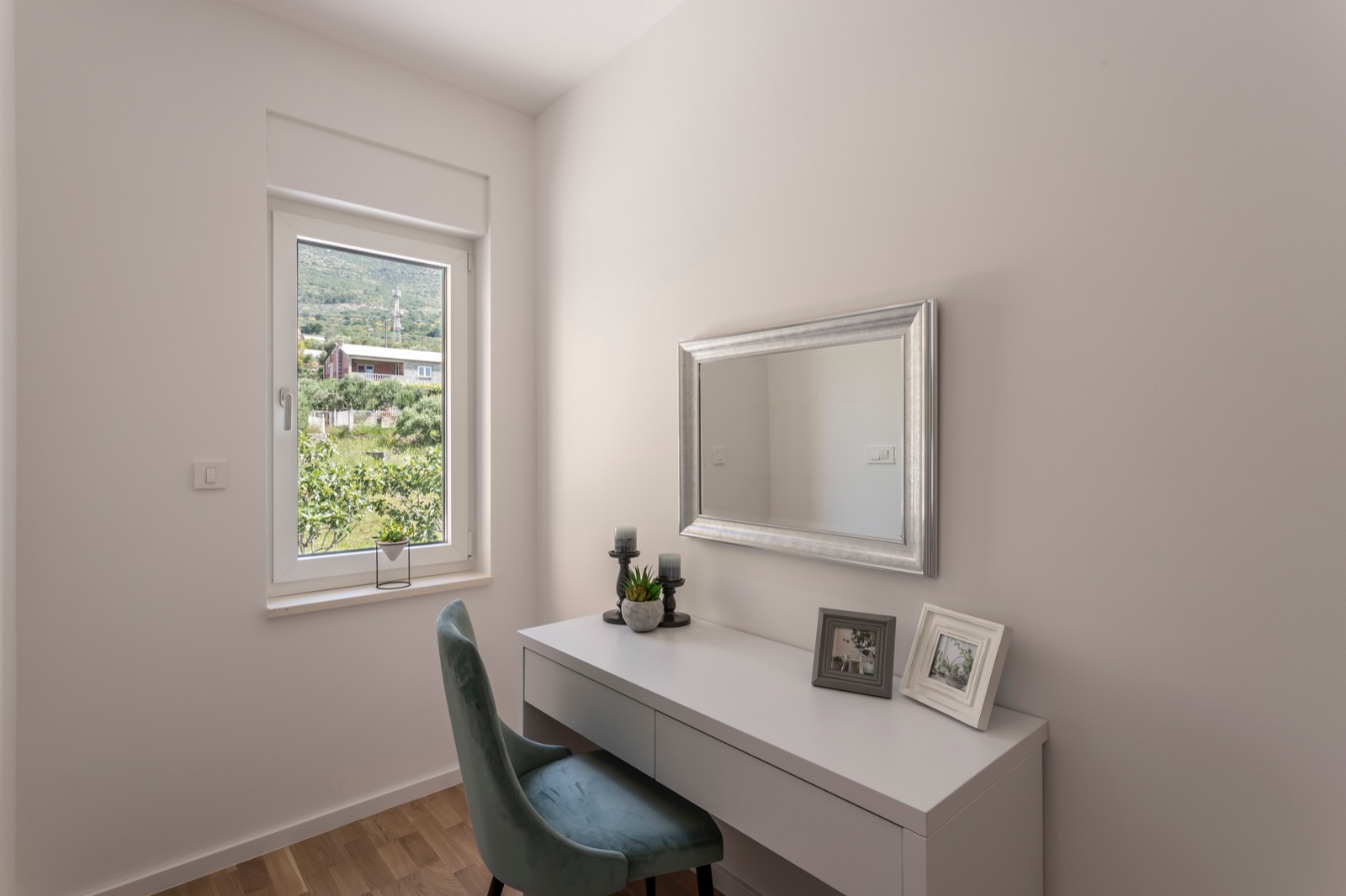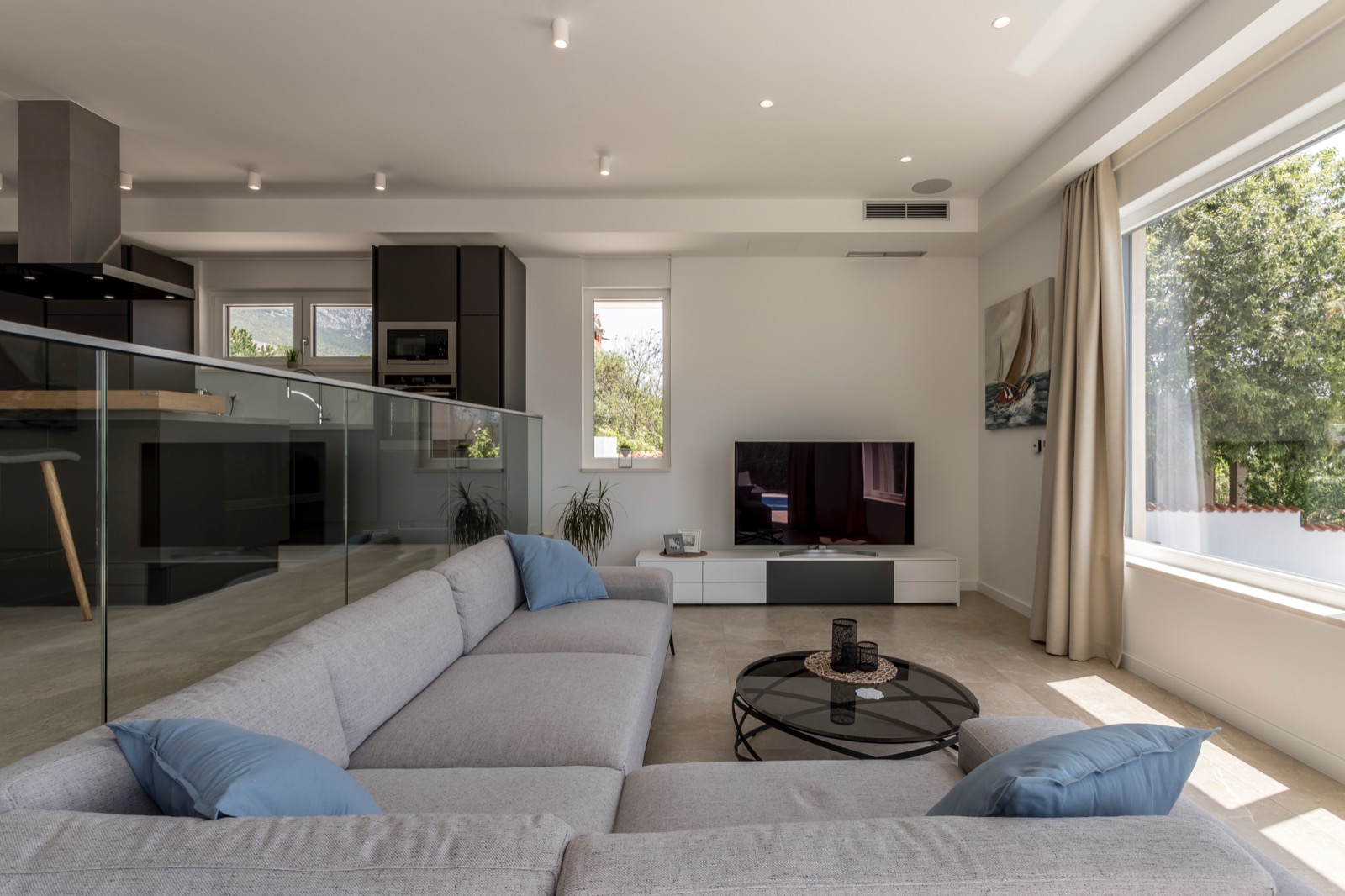Villa Noni was completed in June 2019 and represents a piece of modern luxury on the Dalmatian coast. Villa is situated in quiet and peaceful area with a sea views. Surrounded by trees perched on a hillside with spectacular views of the Mediterranean sea and islands. With large terrace, parking space, olive gardens, covered outside seating area and inviting heated swimming pool it has all the facilities to let you enjoy your holiday with family.